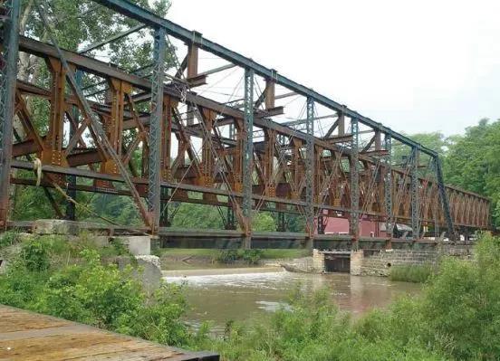 這座印第安工廠橋最初建于1913年,跨度為177ft.(約53m),單車道,采用雙腹材普拉特下承式桁架。橋梁性能日漸退化,直到它引起了懷安多特縣的工程師Michael B. Kohl的注意。鑒于這座橋梁的特殊位置,Kohl啟動了一個(gè)項(xiàng)目來考察如何對該橋梁結(jié)構(gòu)進(jìn)行保護(hù)。俄亥俄州曼斯菲爾德的一家土木/結(jié)構(gòu)公司——Richland工程有限公司被選中進(jìn)行修復(fù)方案的制訂,并最終給出了橋梁的修復(fù)方案。
